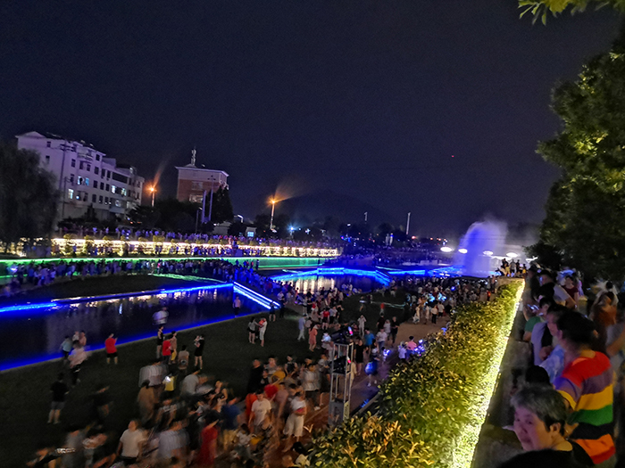 大陳江景觀帶音樂噴泉和水幕電影精彩呈現(xiàn),吸引了上萬居民圍觀。