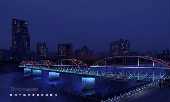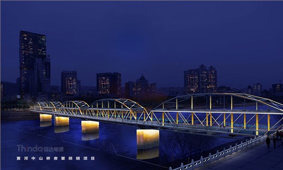 蘭州中山橋歷史悠久,建于清光緒年間,素有“天下黃河第一橋”之稱,全長234米,寬7.5米。信達電通邀請橋梁建筑設計師和信達照明設計師聯合主筆,暖黃光和藍光為主色調,形成和諧夜景氛圍,既滿足夜間基礎照明照度,又通過燈光渲染將大橋體量在夜間凸顯,重拾大橋風度。