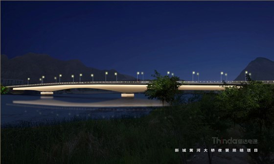 新城黃河橋是蘭州市對外交通西干線的重要樞紐,信達電通采用簡單的照明手法表現橋體的結構,凸顯橋體的敦實與厚重之感。暖黃光與彩繪圖案在橋底相繼呈現,展現大橋的不同形態。