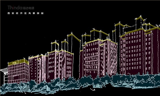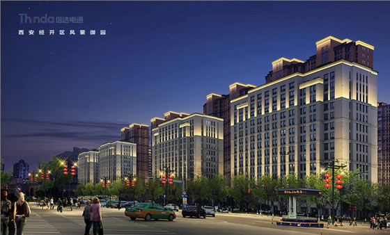 風景御園位于西安市經(jīng)開區(qū)鳳城八路,在市政府對面,本項為商業(yè)辦公樓夜景照明設計,建筑的立面材質為淺色石材為主。四棟建筑的建筑形態(tài)相同,沿縱向結構游走,整體造型簡潔、大氣,本項屬于高層建筑。