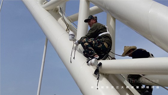 通過緊張的橋梁亮化工程施工,信達電通通過合理的工作分工與時間安排,在大橋通車要求時間內完成了橋體的燈具安裝工作,順利完成了亮化工程任務。