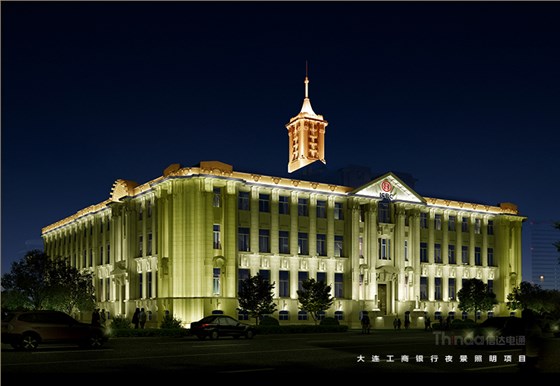 燈具隱藏于建筑構件內部,突顯見光不見燈的設計手法,設計前期對建筑表面做細致的分析,燈具的出光角選擇上也會盡量貼合大連市夜景照明工程中工商銀行的建筑結構。