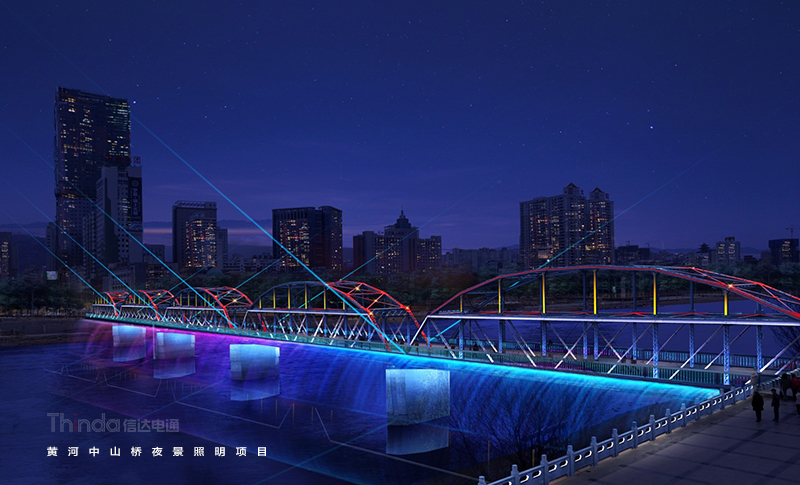 蘭州中山橋歷史悠久,建于清光緒年間,素有“天下黃河第一橋”之稱,全長234米,寬7.5米。信達邀請橋梁建筑設計師和信達照明設計師聯合主筆,暖黃光和藍光為主色調,形成和諧夜景氛圍,既滿足夜間基礎照明照度,又通過燈光渲染將大橋體量在夜間凸顯,重拾大橋風度。