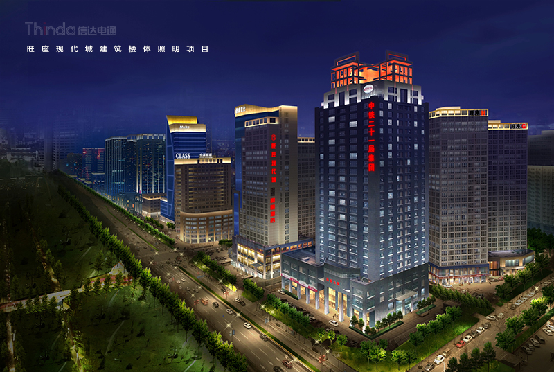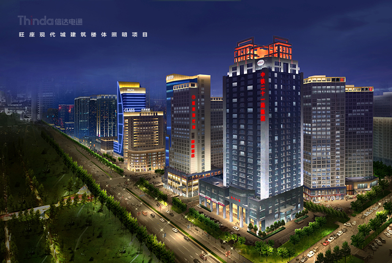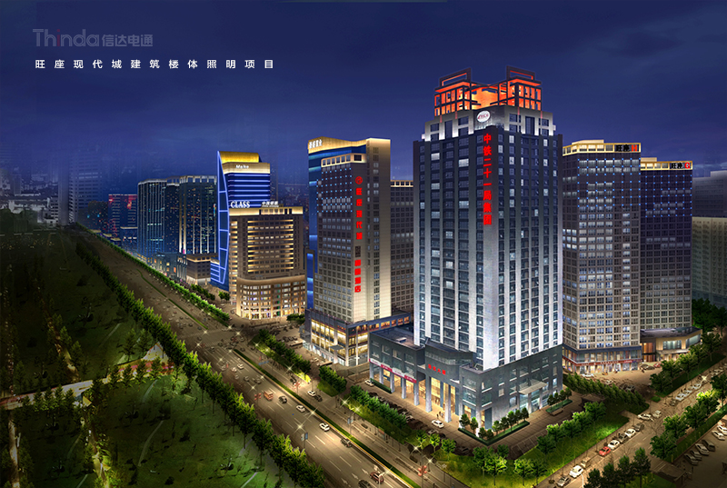 旺座現代城就位于西安的核心區域——高新區,是一組大型商務辦公綜合空間群落,信達設計團隊在旺座現代城的夜景照明設計中增加建筑輪廓及頂部的照明,尊重建筑的結構,凸顯建筑特點。因現代城地理位置繁華,信達為其設計了節日模式、平日模式和節能模式三種亮燈方案。其中節日模式選擇洗亮旺座現代城的建筑頂部,其次用白色的洗墻燈照亮整個建筑的外立面輪廓,選用信達自主知識產權的產品星光燈點綴,給旺座現代城增加了濃濃的節日氣氛。