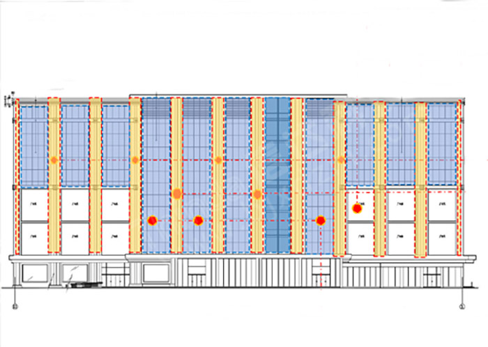 本項目開展初期信達(dá)電通設(shè)計團(tuán)隊開始對項目目前情況進(jìn)行調(diào)研,調(diào)研發(fā)現(xiàn)現(xiàn)有照明建筑立面以大功率投光燈體現(xiàn),沒有很好的體現(xiàn)建筑結(jié)構(gòu)及商業(yè)氛圍,整體昭示性不強(qiáng),廣場也僅是功能照明,面臨主街視點,整體夜態(tài)效果較黑,吸引力不夠,商業(yè)價值沒有很好體現(xiàn)。